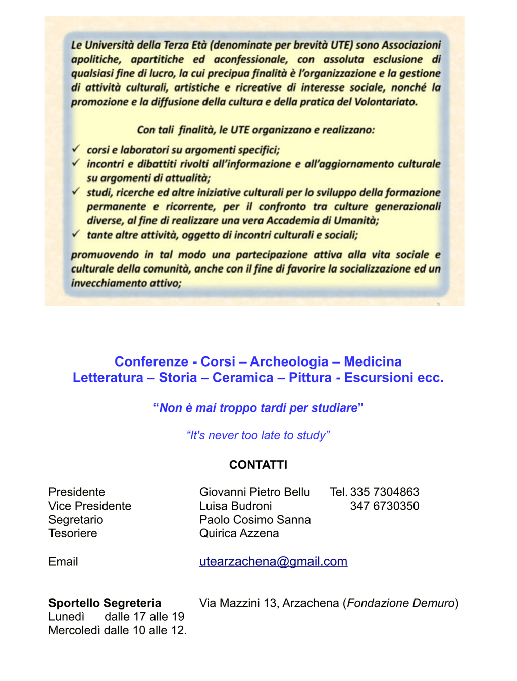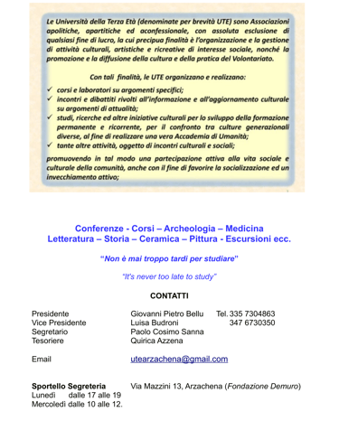 © 2025 UTE - Università delle Tre Età ARZACHENA. Tutti i diritti riservati. Realizzato da Daniele Ragnedda